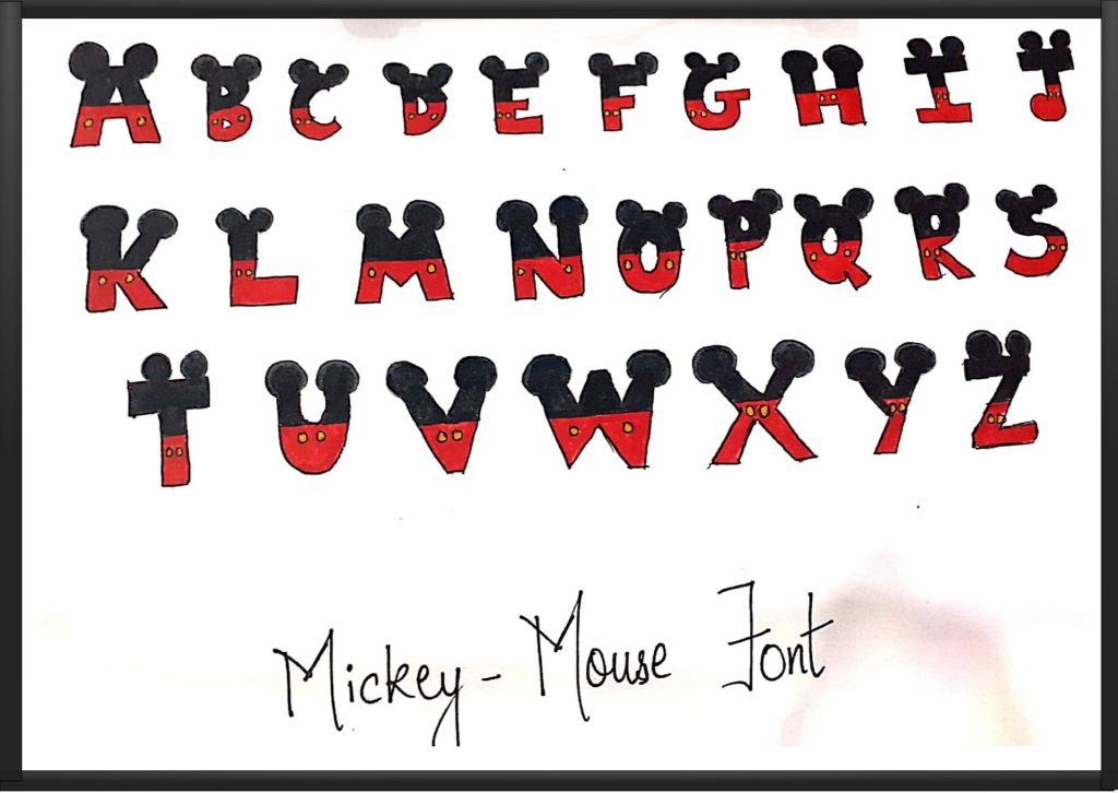 Mickey Ears is another font that mimics the lettering and the main difference is that each letter is put inside the silhouette of the head and ears of Mickey Mouse.